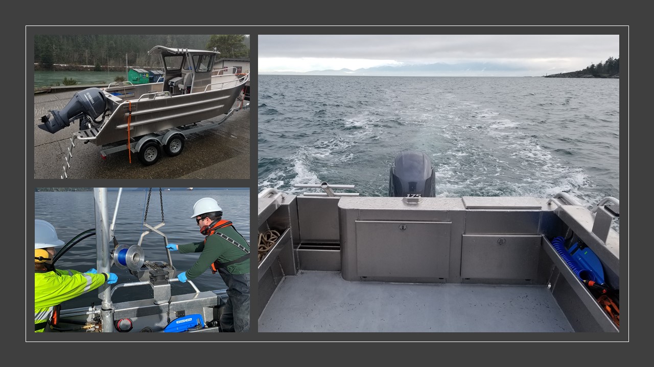 Our bareboat charter vessel is a 21' heavy gauge custom aluminum that is easy to operate and maneuver. Fully insured for bareboat charters. You skipper, we deliver. Regular maintenance and support as required. Typically available for medium to long term contracts, Inquire for details.